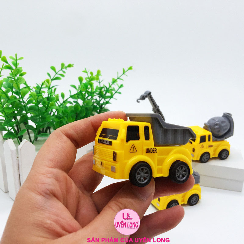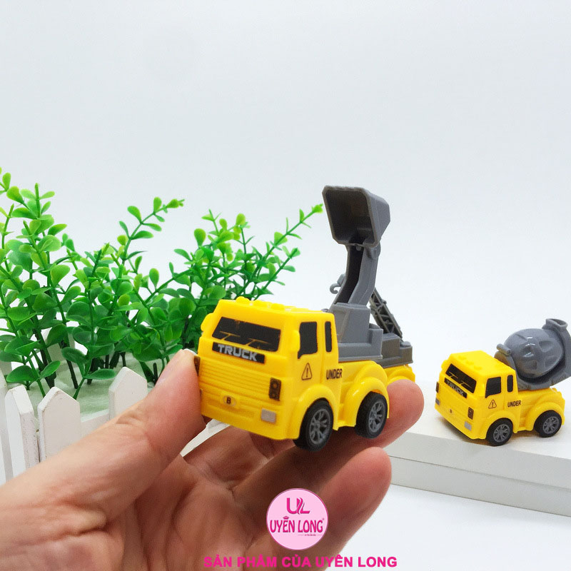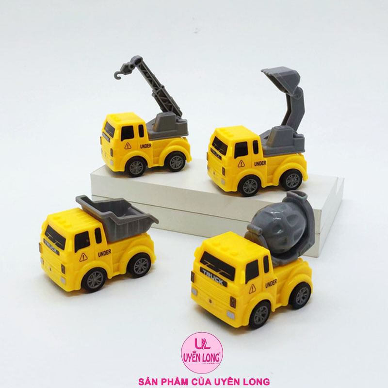 - Sản phẩm mô hình xe công trình chạy cót mini cho bé được phân loại thành 4 xe: Xe chở xi măng / Xe ben / Xe xúc đào / Xe cẩu. Mua cả 4 loại để làm thành 1 bộ xe công trình hoàn hảo.