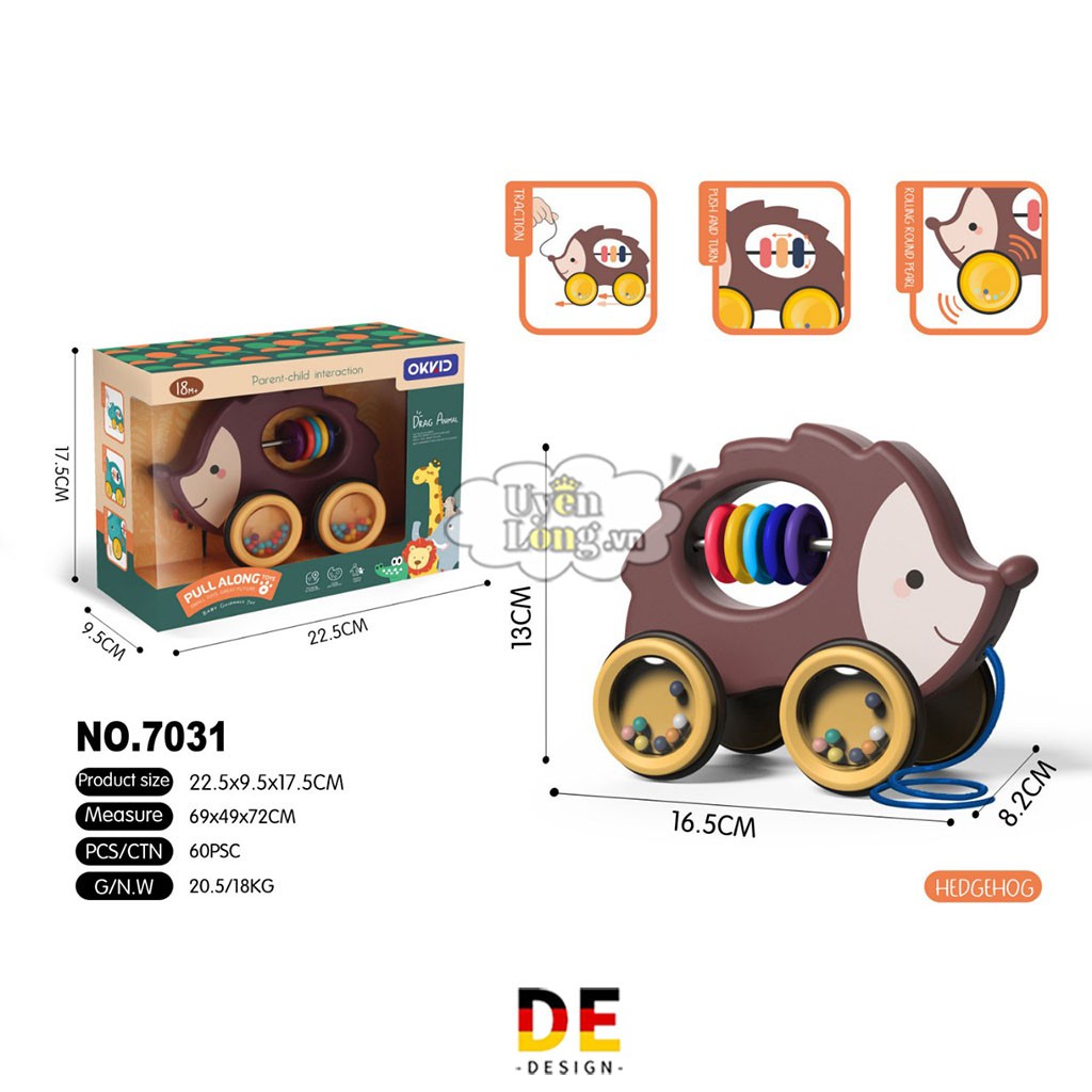 - Sản phẩm gồm 6 phân loại: Cua / Thỏ / Nhím / Rùa / Tê Giác / Khủng Long đa dạng cho các mom lựa chọn